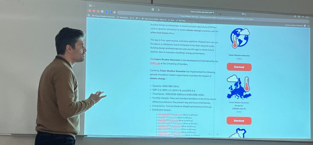 CLING was developed as a co-promotion partnership led by ADAI, with CMUC, CESAM, and CONSTRUCT. This interdisciplinary collaboration integrated expertise in mechanical and environmental engineering, climatology, architecture, civil engineering, and applied mathematics. Beyond research, the project invested strongly in training and outreach, through workshops, invited lectures, and academic supervision, ensuring that climate change–based design knowledge reaches both professionals and students.